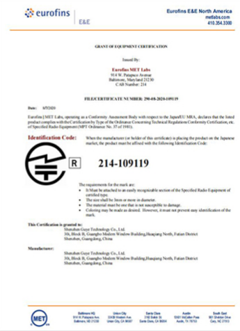 A1 We have many certifications to meet different market demedes SuchCE ROHS FCC CRC SED CRC PS ENZ1 e!