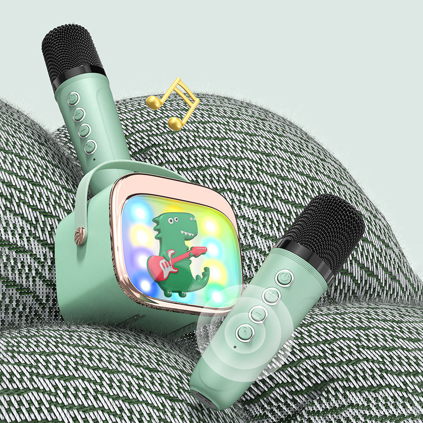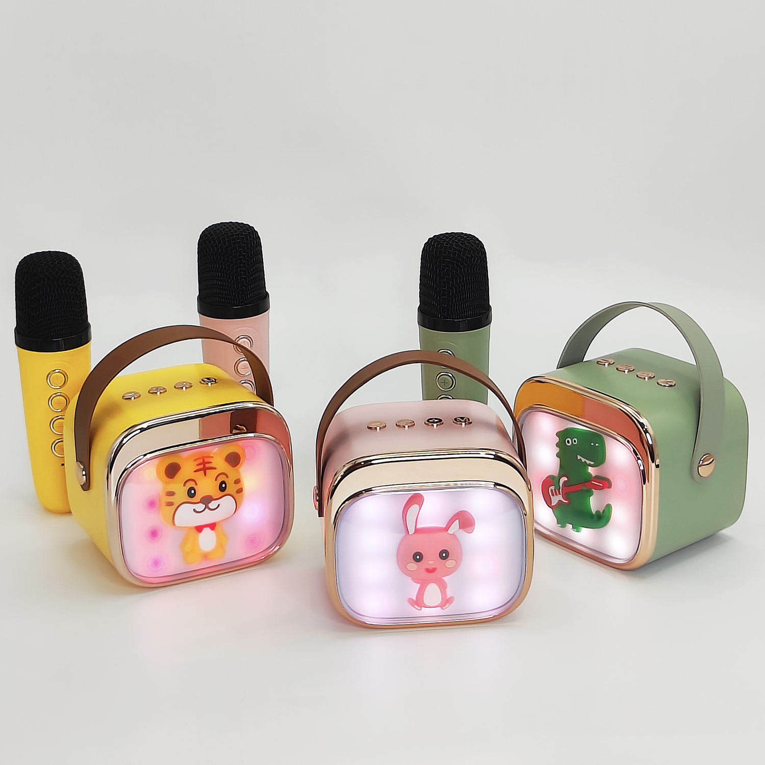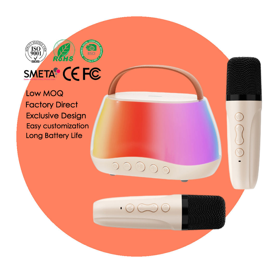 Portable Custom Logo KTV Karaoke System Mini Box Speaker Mp3 Player Music Microphone Machine Toy With 2 Wireless Mic