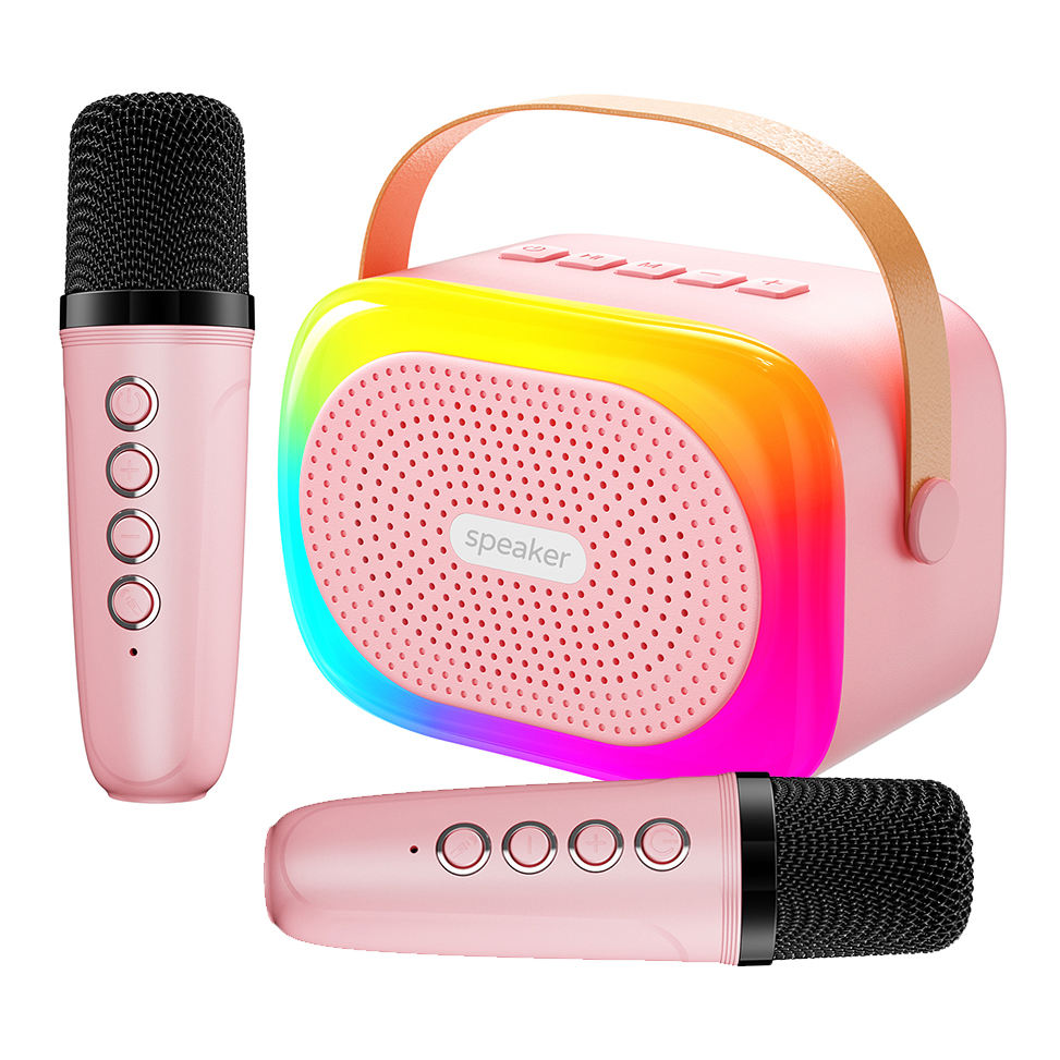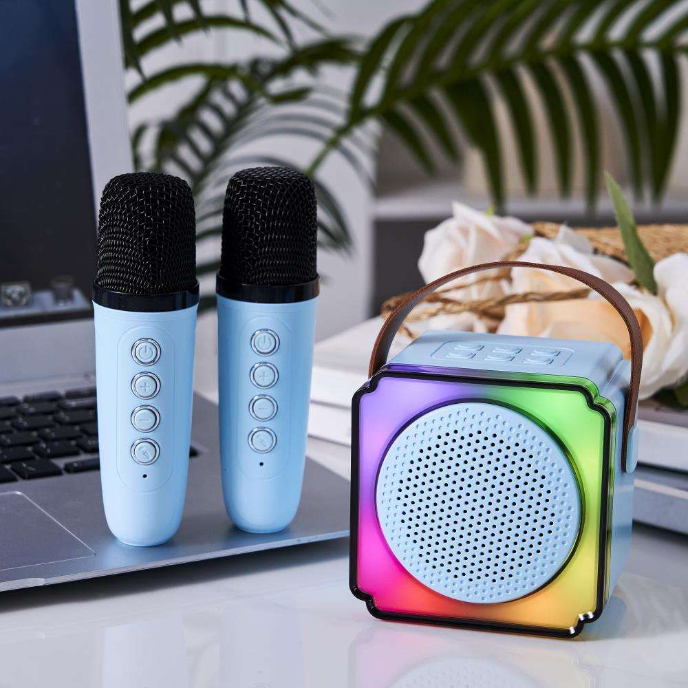 Portable Kids Sing RGB Changer 2 Microphone Small Mini Karaoke Machine Professional Home Amplifier Speaker