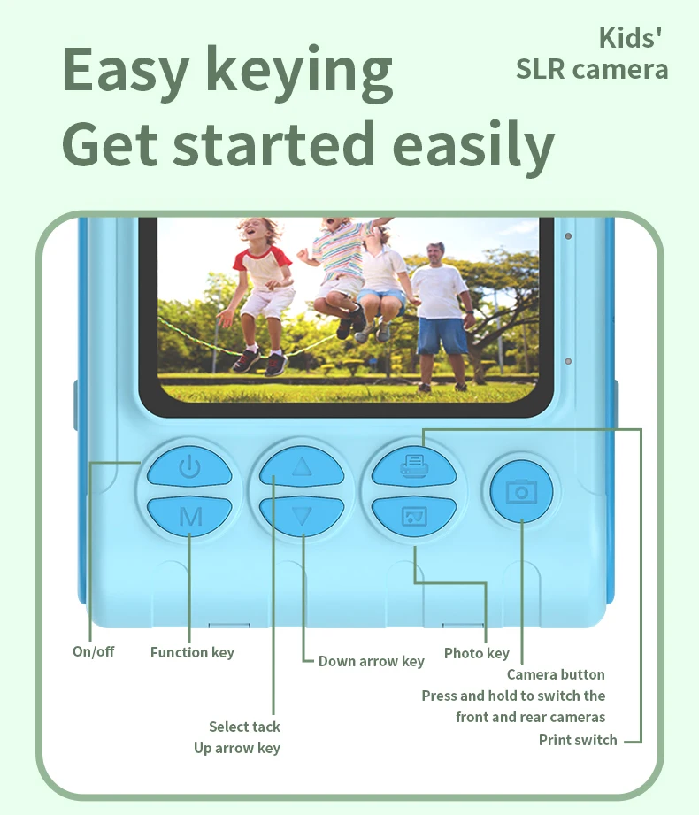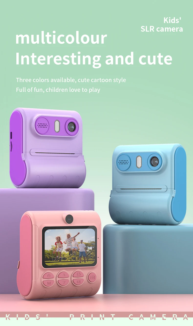 2.4inch Screen Kids Digital Camera Cute Cartoon Custom Logo Printed Film Camera Flash with Photo Print Paper Toys