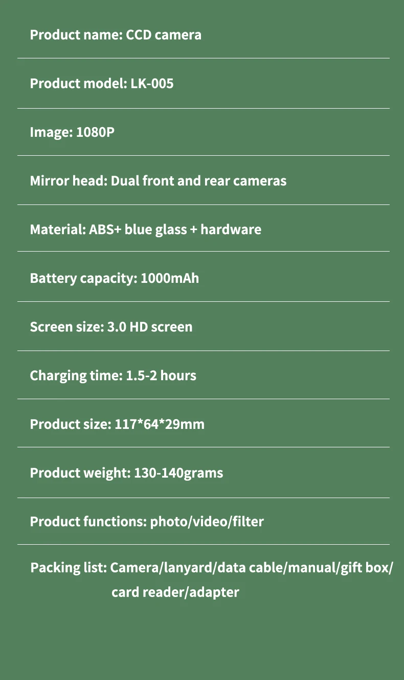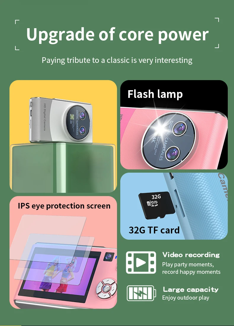 / 2025 Kids Safety Digital Mini 1080P HD Video Camera with 2.4 Inch LCD and Instant Print Plastic Case CCD Imaging Sensor