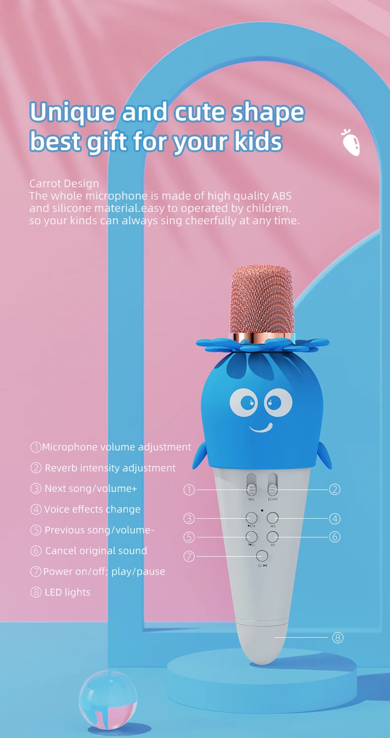 K5 Karaoke Microphone with LED Lights Ideal for Singing Christmas Celebrations Music Enjoyment Gift for All Ages