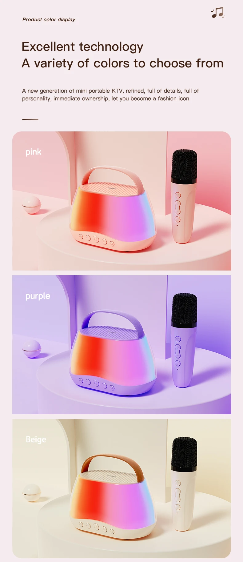 | feature | colorful LED light, Karaoke, Lightweight and Portable, Early Education, Loud & Clear Sound, TF Card Support, Bluetooth Connection, Wireless microphone | private mold | Yes |