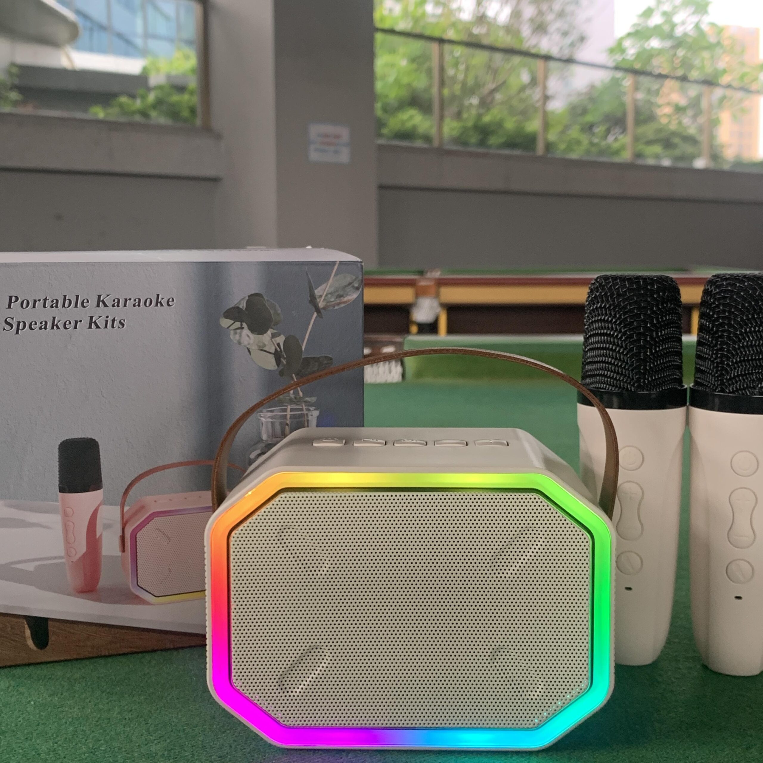 | with handheld microphone | With 2 microphone | led lighting | RGB |