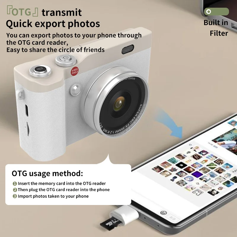 Professional 4K CMOS Sensor Digital Camera for Children 6400W 2.4-Inch Display Compact Flip Selfie Screen Image Stabilization